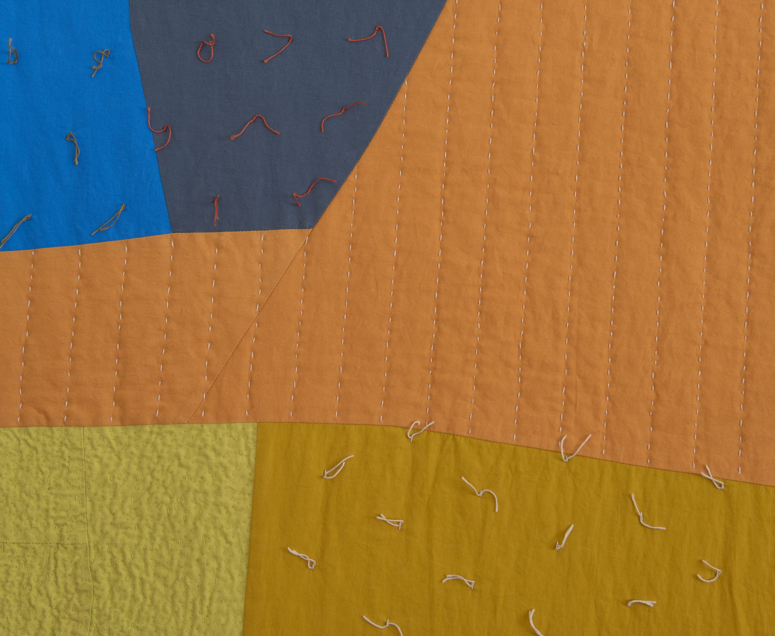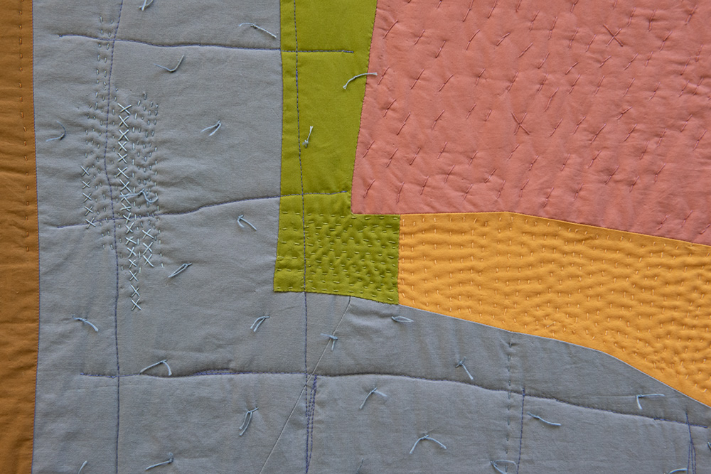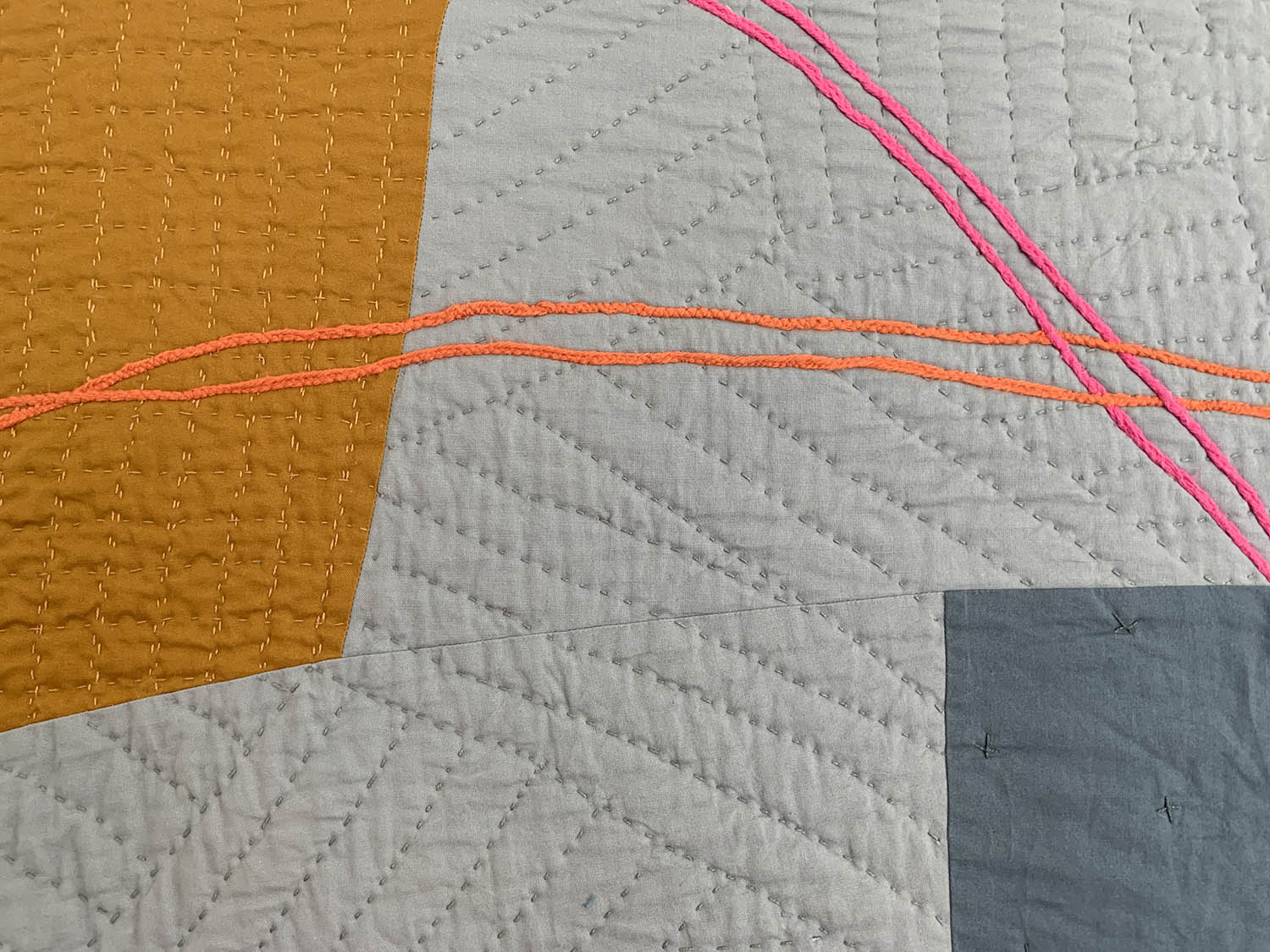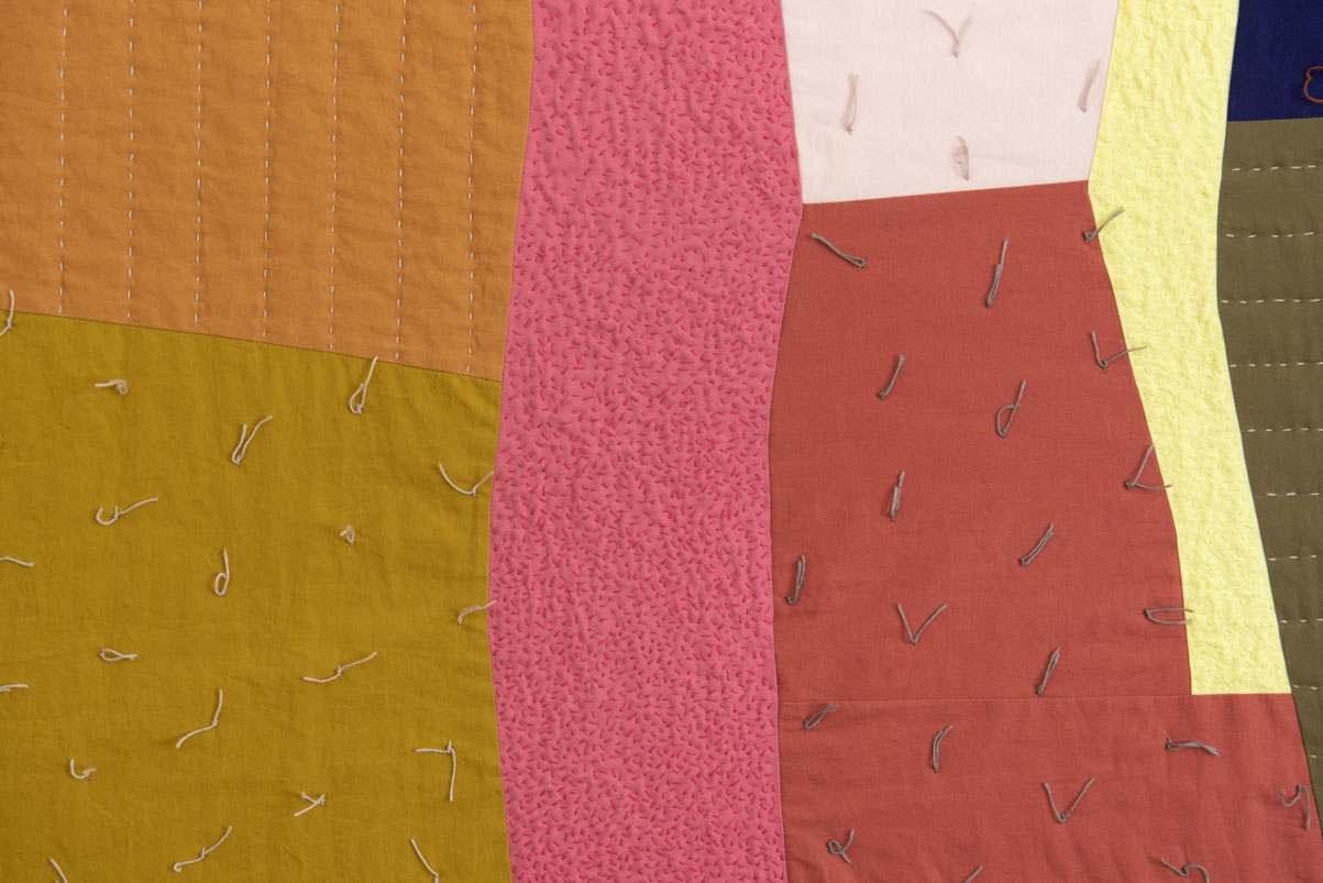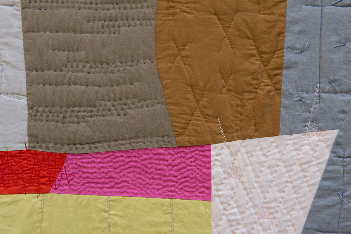 I place two colors side by side; together they are magical. I rearrange the composition to kindle their romance. A muscle twitch contracts my elbow, and a previously obedient seam becomes a distinctive gesture. I add another unexpected line to give the first one company.